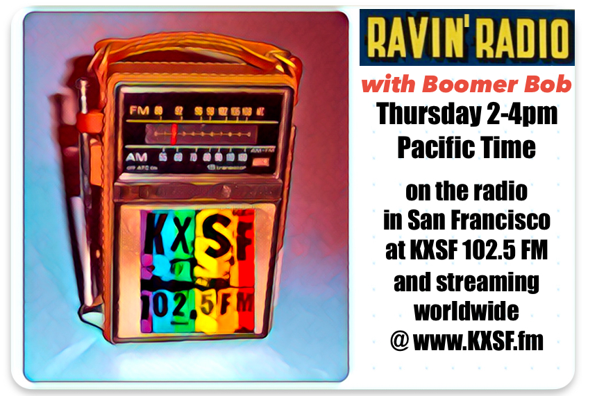 Tune in to RAVIN’ RADIO for a free-form show of blues, jazz, funk, soul, psychedelia, bluegrass, Americana, roots, rock and reggae, with your host “Boomer” Bob.